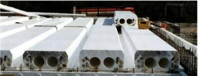 El sistema consta de grandes bloques de poliestireno que incorporan profiles de viga de acero ligero.