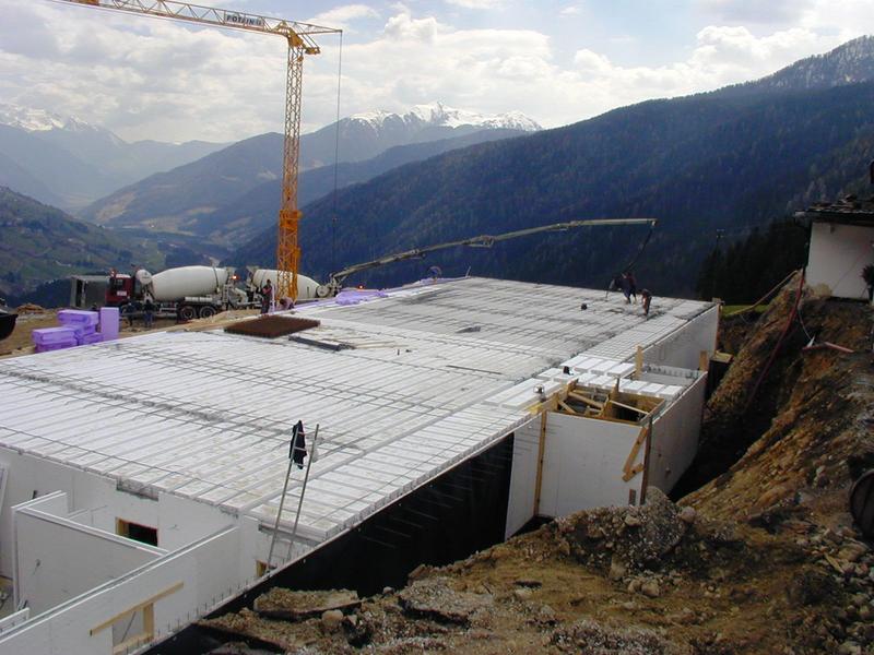 El sistema consta de grandes bloques de poliestireno que incorporan profiles de viga de acero ligero.